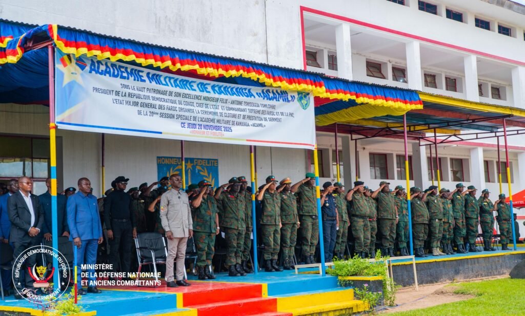 Le vice-Premier Ministre, ministre de la Défense nationale et des Anciens combattants Guy Kabombo a présidé ce jeudi 20 novembre, la cérémonie de prestation de serment de 135 lauréats de l’Académie militaire de Kananga, au Kasaï Central.