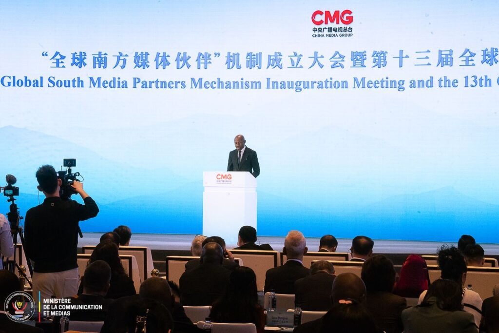Au cours de cette grande réunion d’inauguration du mécanisme des partenaires des médias du Sud Global et du 13ᵉ Forum mondial des médias vidéo, le ministre a, au nom du Gouvernement de la République démocratique du Congo, exprimé ses remerciements les plus sincères ainsi que ses chaleureuses félicitations aux organisateurs de ces assises : China Media Group (CMG), CGTN, CCTV Video News Agency, ainsi qu’aux autorités de la République Populaire de Chine pour la qualité de l’organisation.