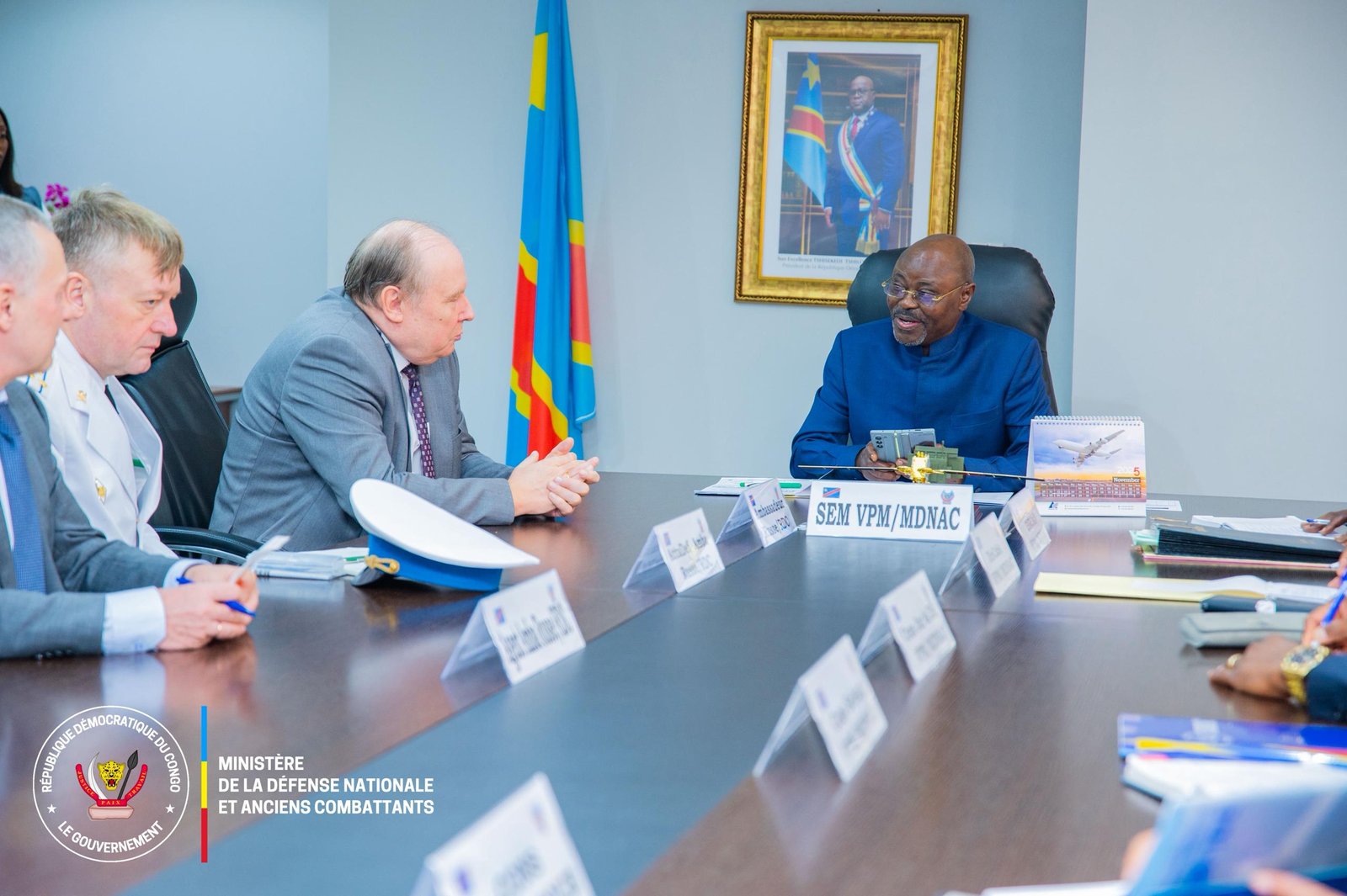 L’audience a également servi de cadre à la présentation officielle du nouvel attaché de défense russe accrédité en RDC. À cette occasion, le VPM de la Défense Nationale, Me Guy Kabombo Muandiamvita, a chaleureusement souhaité plein succès au nouvel officier dans ses fonctions et a renouvelé l’engagement du gouvernement à maintenir un dialogue technique régulier. L’objectif principal de cette collaboration continue demeure la professionnalisation et le développement soutenu des Forces Armées de la République Démocratique du Congo (FARDC).